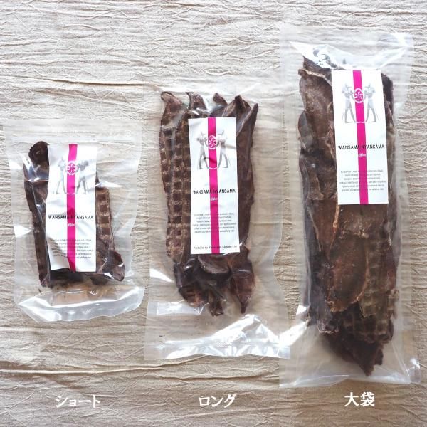 通常のモモジャーキー(ロングサイズ)の内容量が60gに対して、こちらの割れモモジャーキー大袋は180g入っています。